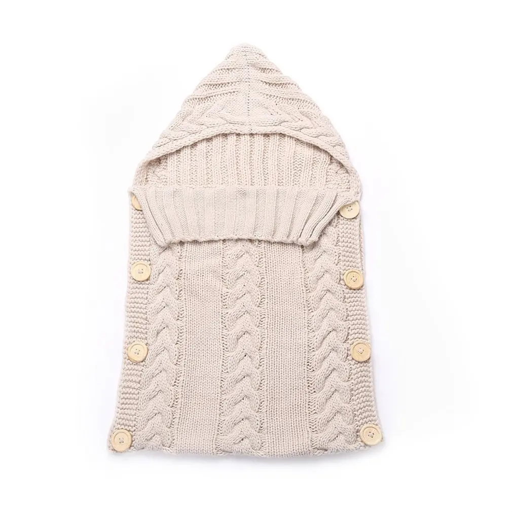 Теплый вязаный спальный мешок, не дающий ребенку промерзнуть в холодные дни.