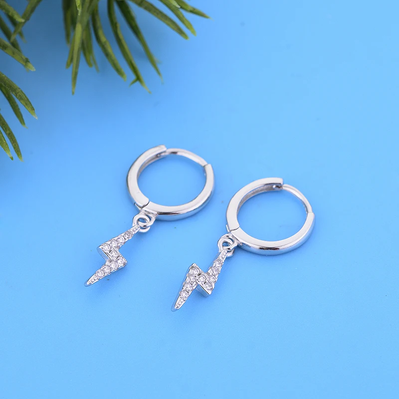 INZATT Real 925 Sterling Silver Zircon lightning Hoop Earrings For Fashion Woman Party Fine Jewelry Geometric Accessories Gift | Украшения