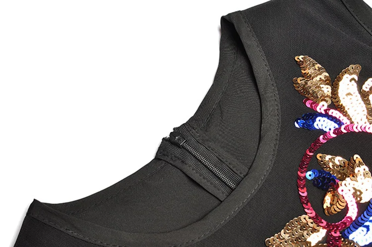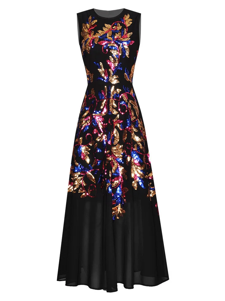 Наименование товара: Сетчатое платье без рукавов с круглым вырезом и вышивкой пайетками на талии, длинное платье большого размера