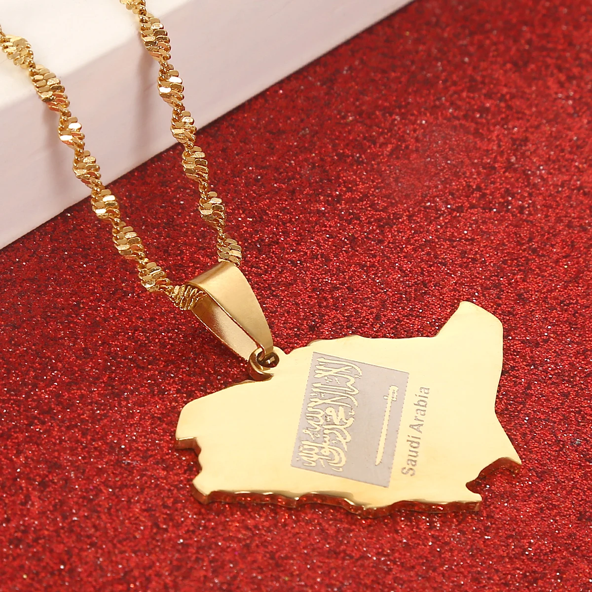 Ожерелье из нержавеющей стали серебряного цвета с изображением карты Саудовской Аравии, Трендовое ювелирное украшение в виде карты