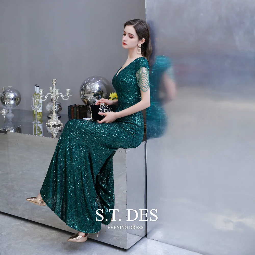 Длинное вечернее платье TaoHill ТРАПЕЦИЕВИДНОЕ на бретелях с кристаллами в горошек