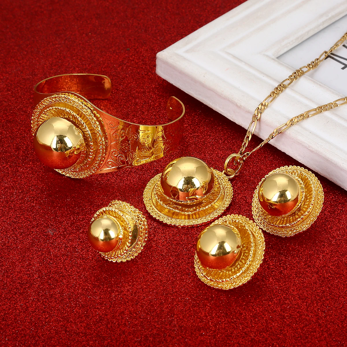 Ethiopian Gold Color Necklaces Bracelet Earrings Ring Gold Color Habesha Eritrean Wedding Jewelry Sets