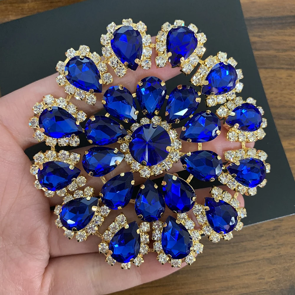 rhinestone applique 1pcs/bag glass rhinestone + metal base size: diameter is 8cm It's flatback ,you can use this decorate wedding dress, dance dress, party dress , it's very beautiful.