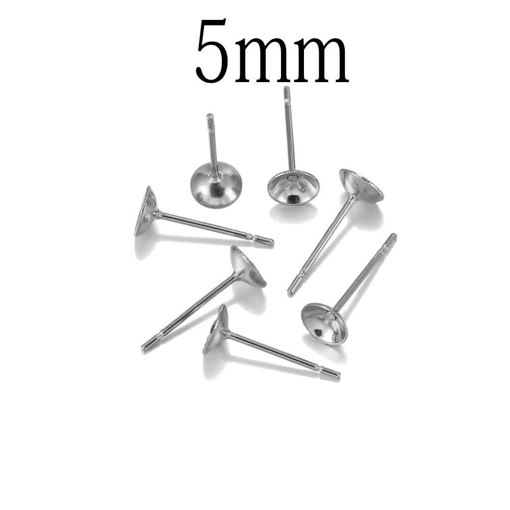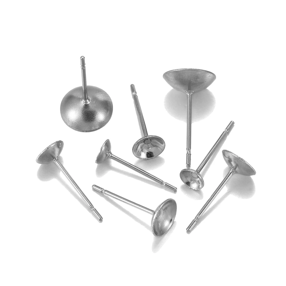 100 шт серьги в форме чашки из нержавеющей стали, настройки для ушных штырей, самодельные серьги для изготовления ювелирных изделий, пустая основа, подходит для кристаллов