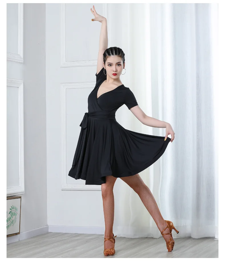 Женский боди для латинских танцев с длинным рукавом и v-образным вырезом топы