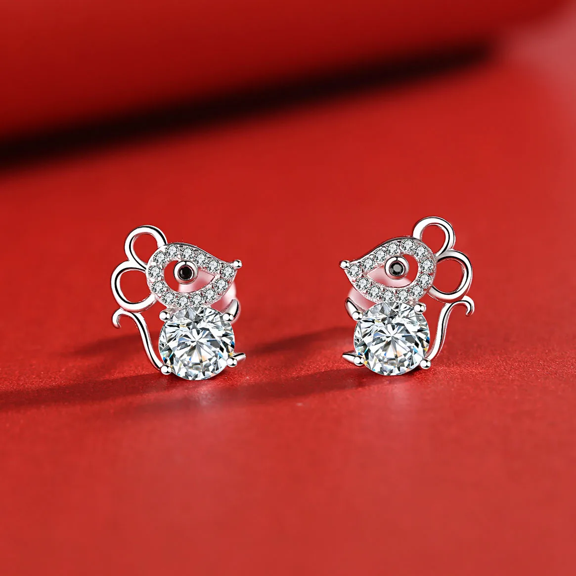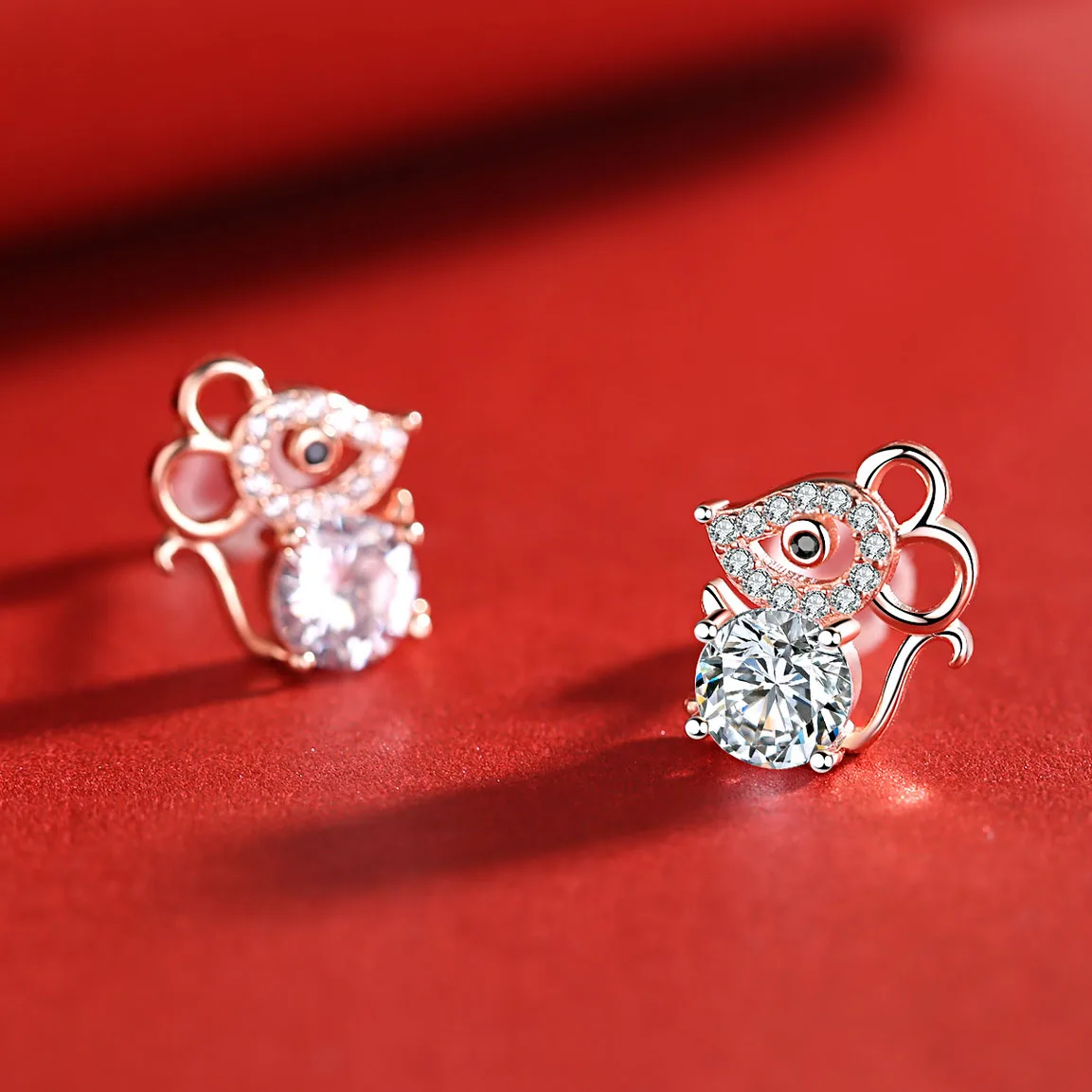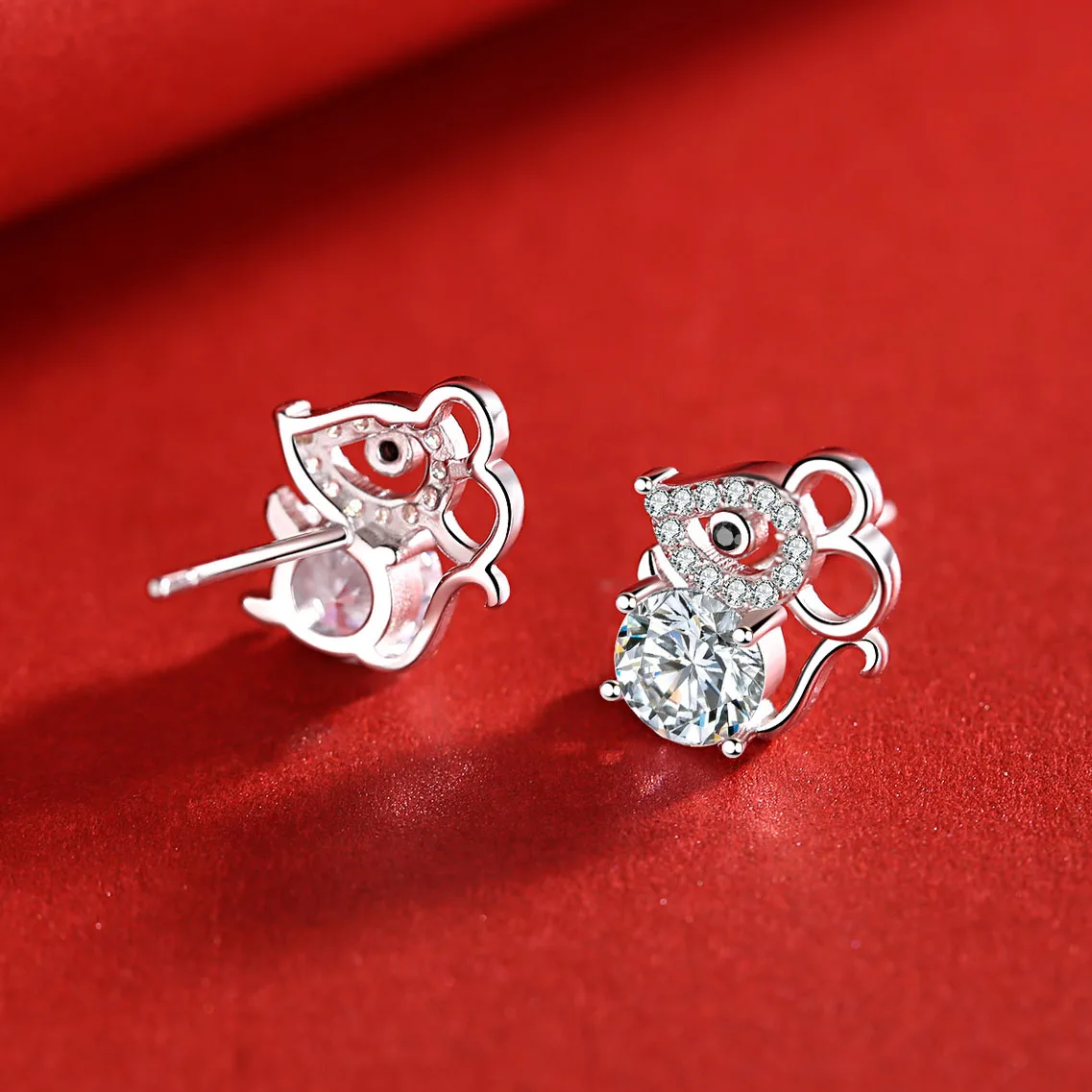 Женские серьги-гвоздики из серебра 925 пробы с котом | Украшения и аксессуары