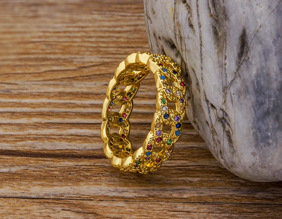 Название: женские кольца из меди с фианитами радуги