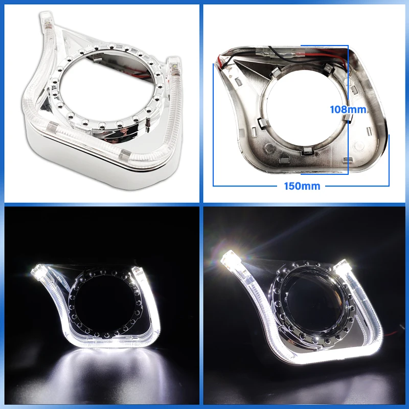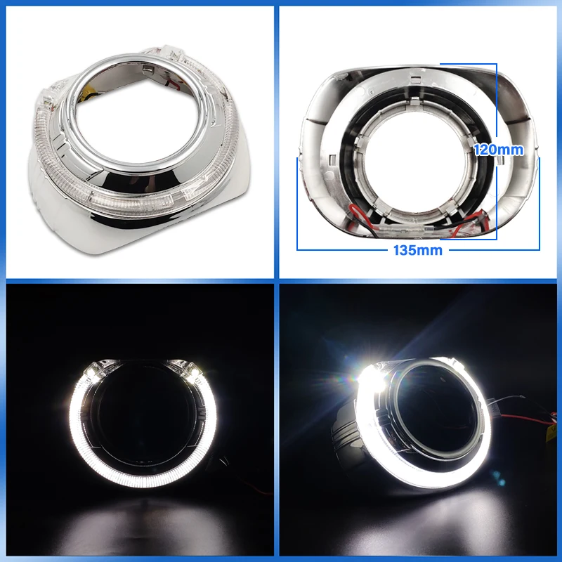 7. Built-in Optic Fiber Angel Eyes(White Color): The angel eye white wiring has a “protect”function, at daytime the angel eyes will be 100% bright, when you turn on your main headlight, the angel eyes will be 50% bright. Thus makes the angel eyes longer life!