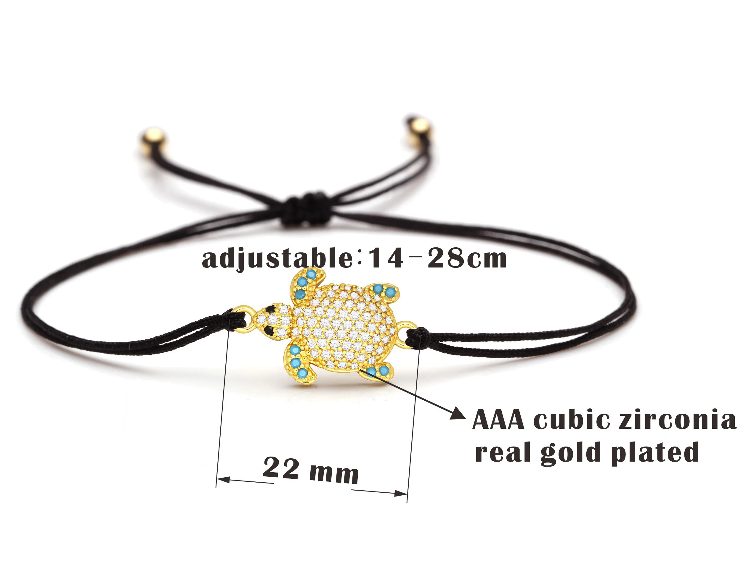 Белый кубический цирконий, латунь, морская черепаха, браслет, женский, роскошный, изысканный, CZ, черепаха, красная веревка, ручная работа, ювелирное изделие, подарок