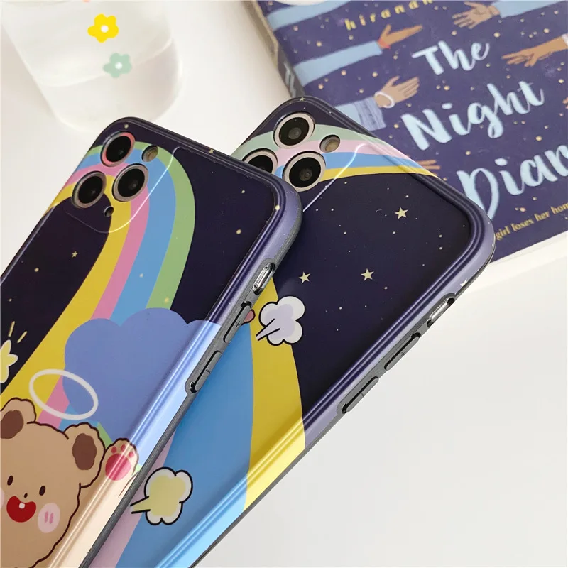 INS корейский милый чехол для телефона с изображением животных радуги медведя для iPhone 11 Pro Max XR Xs Max X 7 8 6 6S Puls мягкий чехол с прорезями