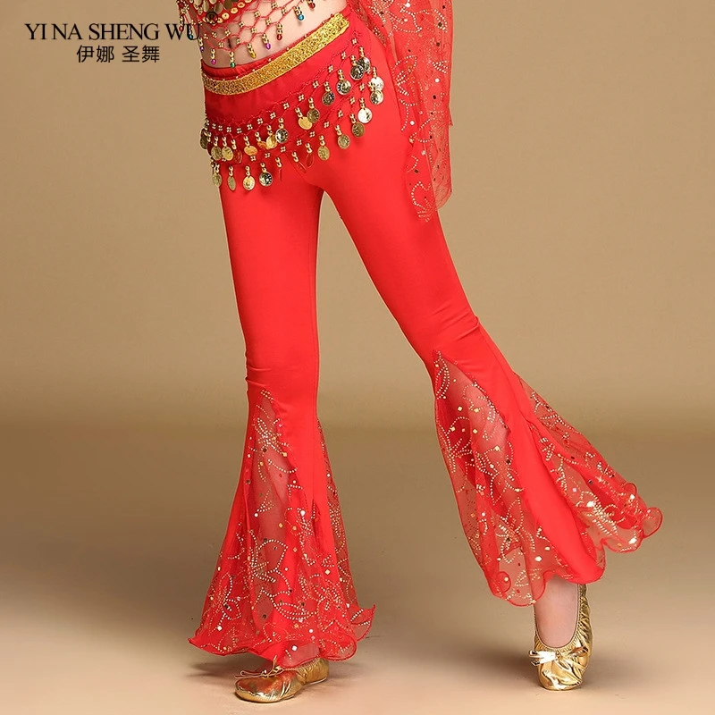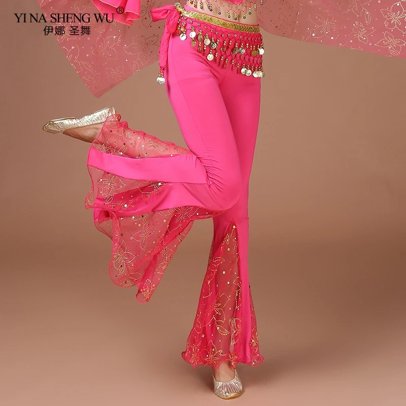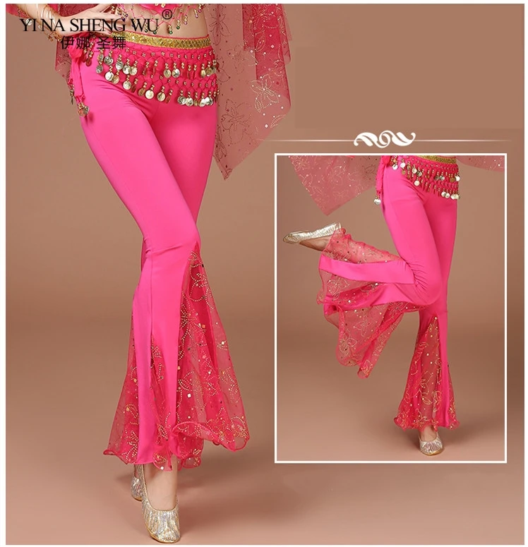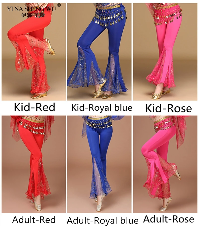 Детские брюки для танца живота из молочного шелка, 3 цвета, тренировочный костюм для танца живота, штаны для танца живота, для женщин, индийская принцесса, с блестками