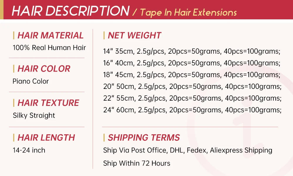 Медно красный лента 50 г в натуральных человеческих волосах для наращивания