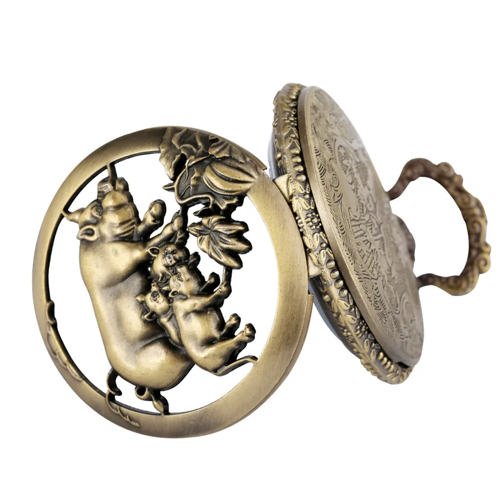 Уникальный внешний вид: эти часы с подвеской состоят из креативного полупрозрачного чехла с изображением свиньи и прочной бронзовой цепочки, она может привлечь внимание других.