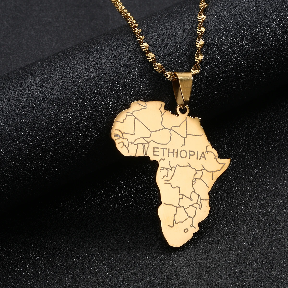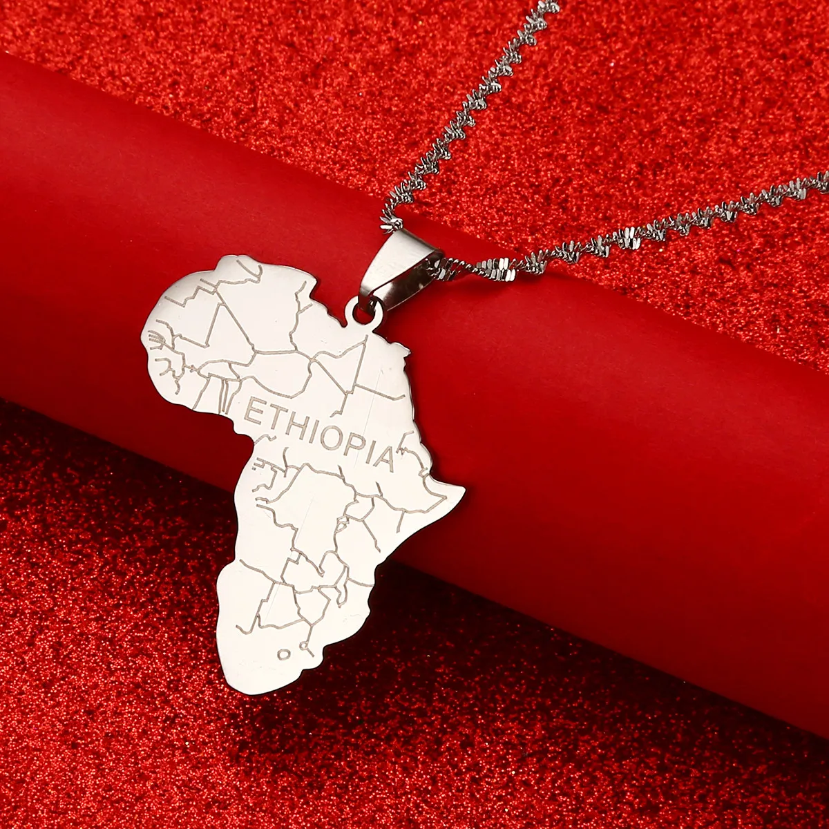 Stainless Steel Fashion Africa Map With Ethiopia Pendant Necklaces For Women Men African Map Jewelry