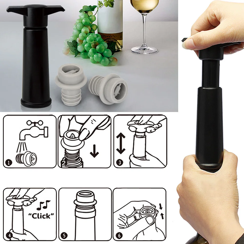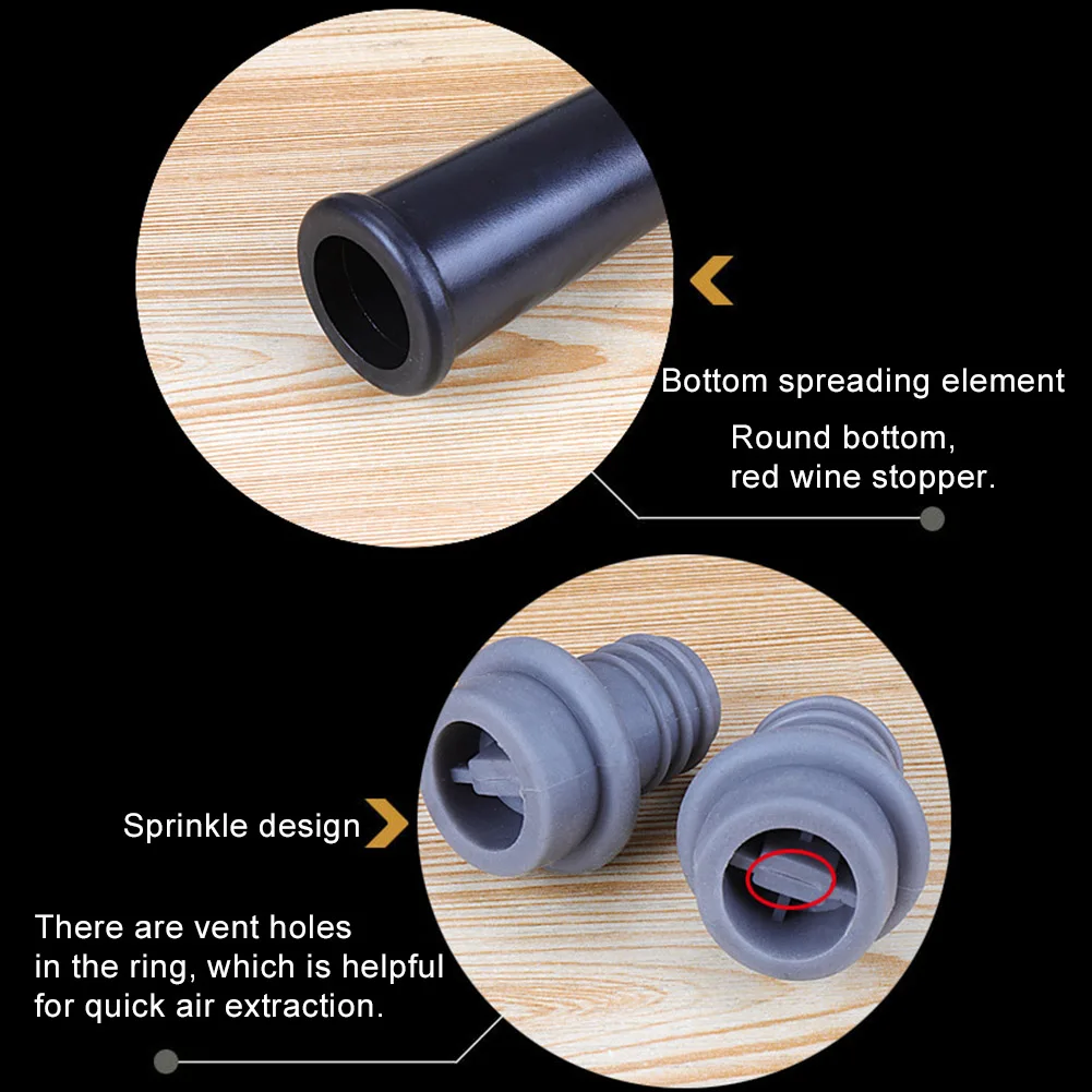 Reusable Wine Bottle Stopper Sealing Vacuum Air Pump Sealer Plugger Silicone Cap