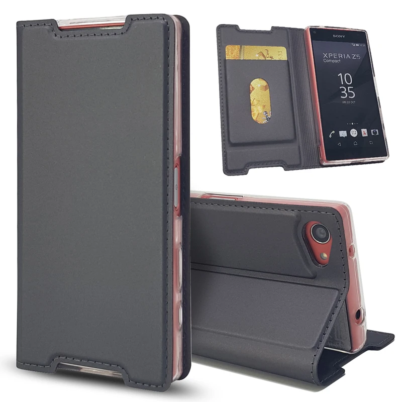 Ультратонкий Магнитный чехол для sony Xperia Z5 Compact с откидной крышкой и подставкой с отделениями для карт, защитный чехол