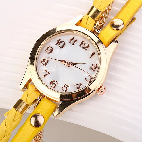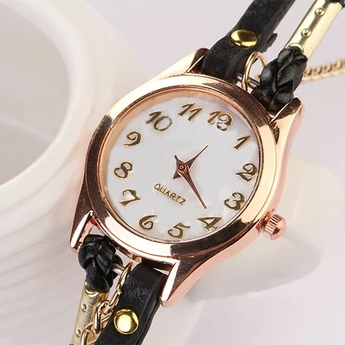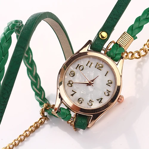 Женский винтажный многослойный браслет из искусственной кожи, плетеный браслет, наручные часы, ювелирные изделия