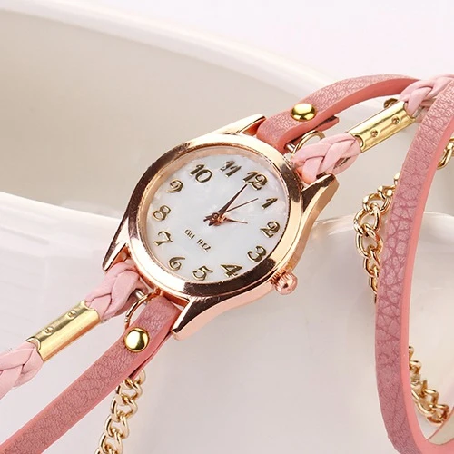 Особенности: Плетеный, круглый циферблат, многослойный, ремешок из искусственной кожи, мода, цепочка