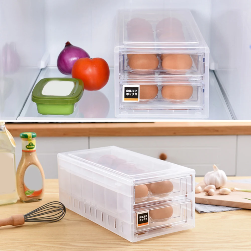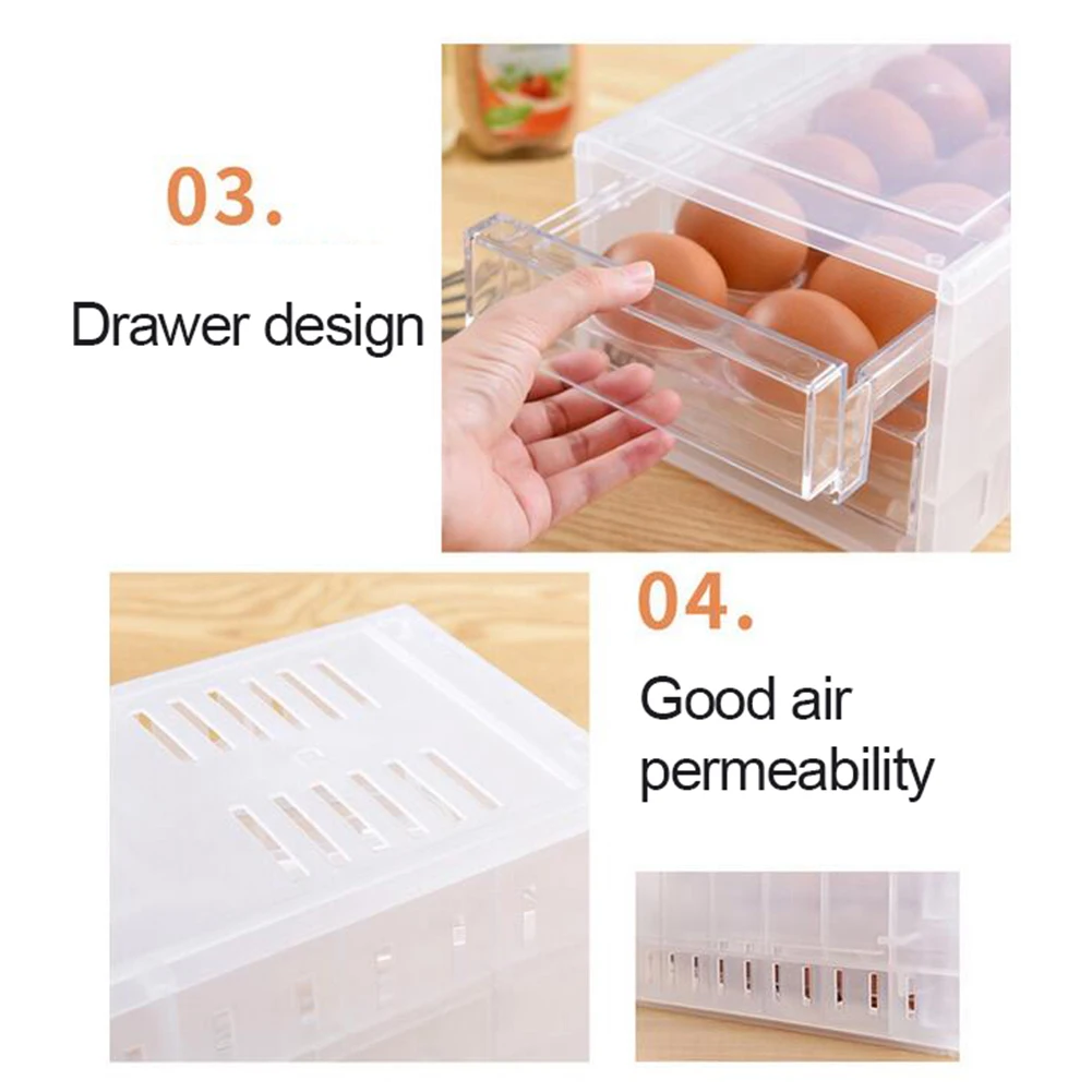 24 Grid Double-Layer Egg Tray Storage Box Drawer Kitchen Refrigerator Container