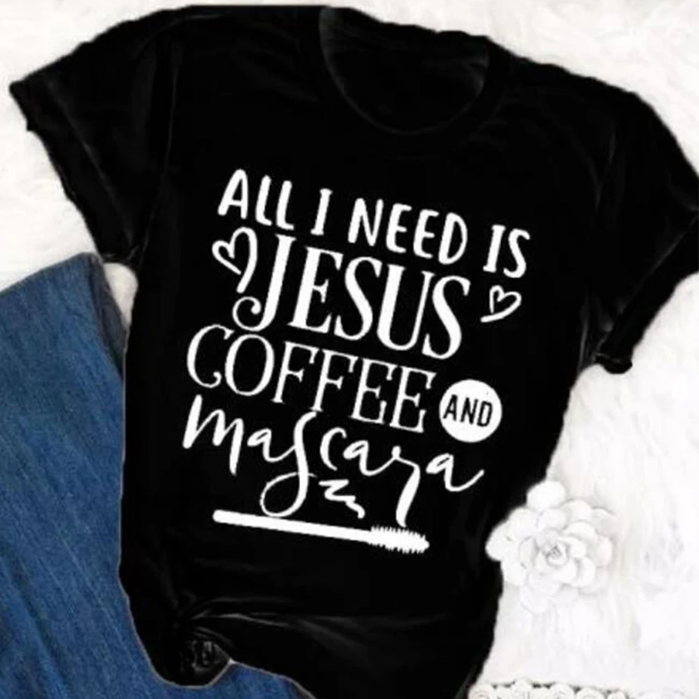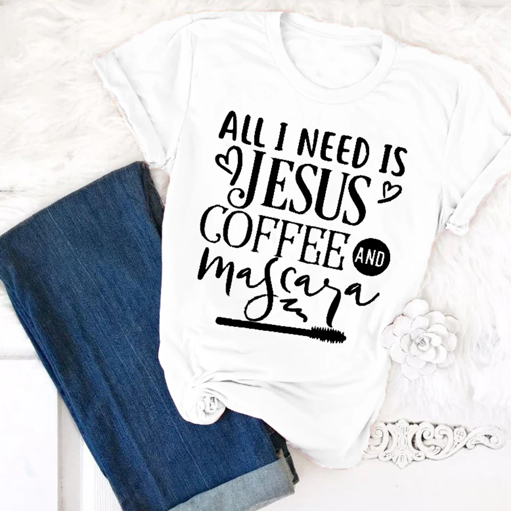 Все, что мне нужно это Иисус кофе и тушь для ресниц футболка христианская религия вера Графические футболки для женщин забавные летние хлопковые топы Прямая поставка
