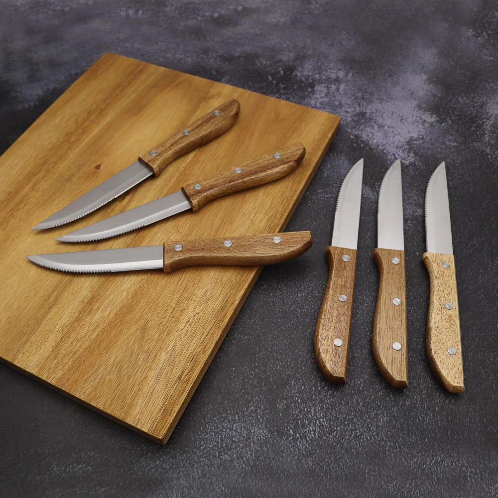 Jaswehome 6 шт./набор из нержавеющей стали набор ножей для стейка ножи для стейка с деревянной ручкой столовые приборы для ресторана столовая посуда
