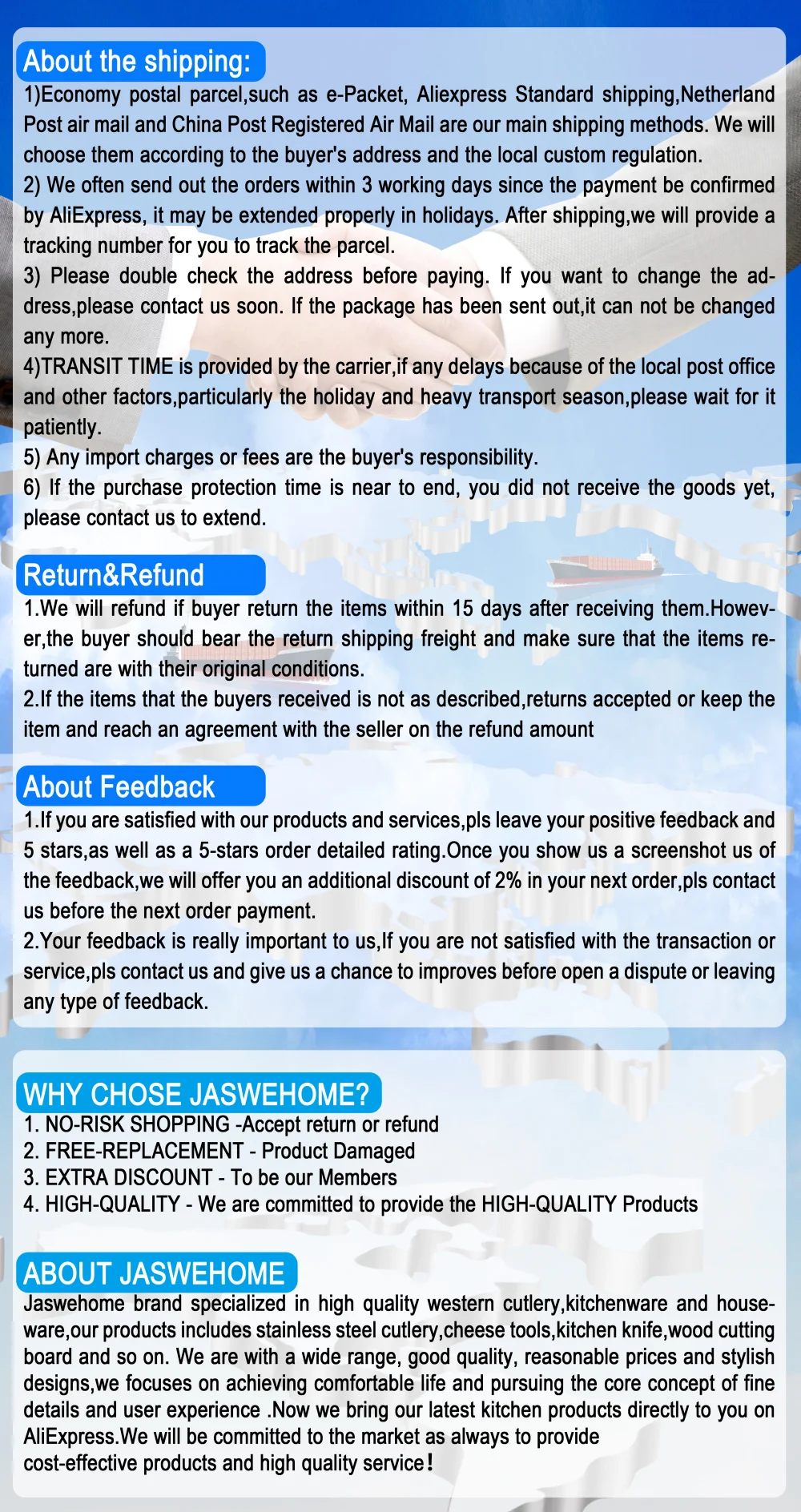 1.Высококачественные ножи для столовых приборов: лезвие для стейков было изготовлено из немецкой нержавеющей стали, твердость, чтобы ножи могли оставаться острыми в течение длительного времени и выше антикоррозийные свойства.