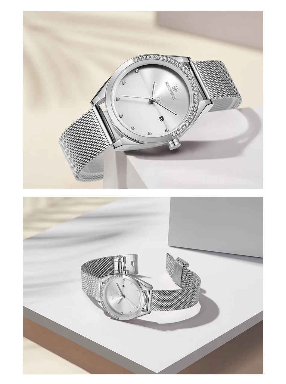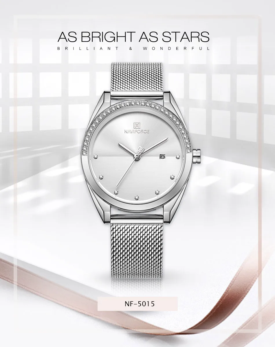 Модель: NAVIFORCE NF5015 Топ люксовый бренд NAVIFORCE модные женские часы водонепроницаемые кварцевые наручные часы женские повседневные синие часы для девочек Relogio Feminino 2020