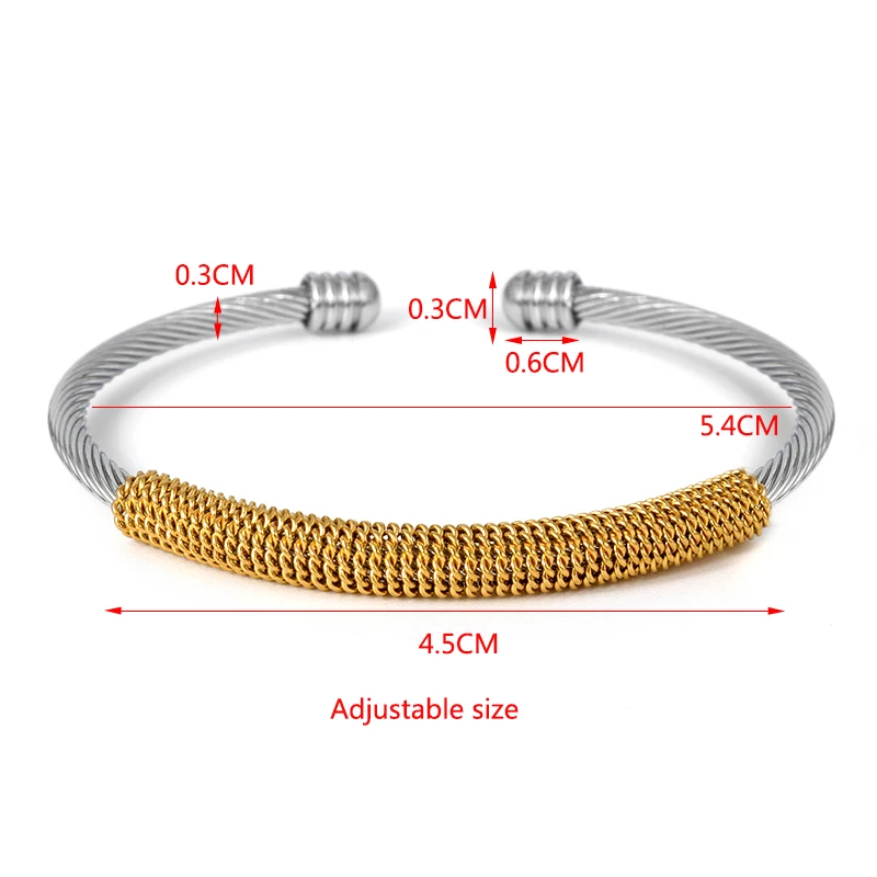 Изделие: Браслет-манжета с кабелем Размеры: 5,4 см Вес: 20g Материал: 100% высококачественная нержавеющая сталь Цвет: Золотой/цвет розового золота/серебристый Подходит для женщин/мужчин/девочек/мальчиков