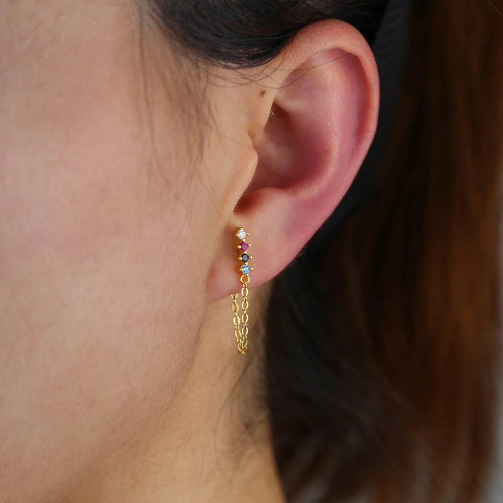 100% 925 пробы, серебряные серьги с минимальной кисточкой и цепочкой, радужные серьги-гвоздики с Луной и звездой, милые очаровательные серьги-гвоздики для девочек