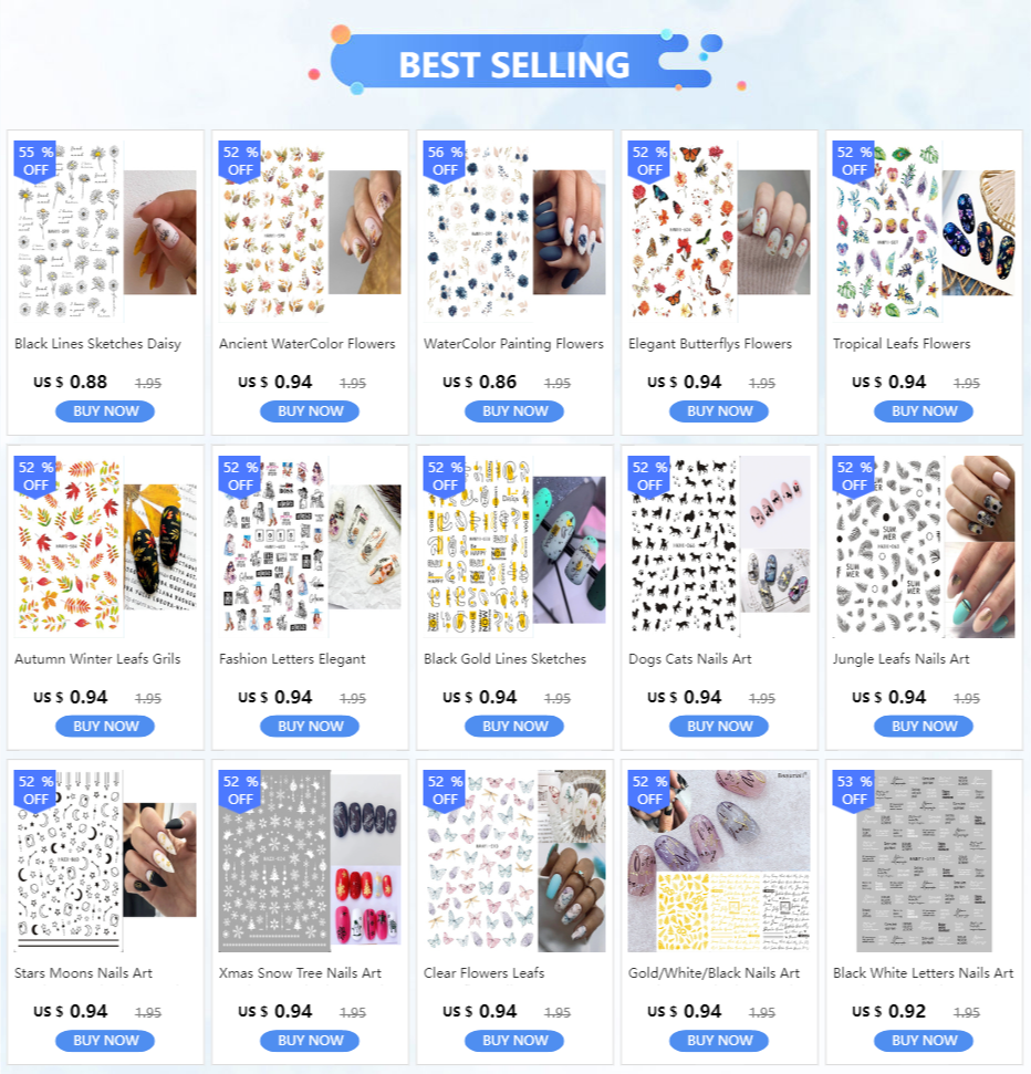 1 Sheet Fashion Nails Art Manicure Back Glue Decal Decorations Design Nail Sticker For Nails Tips Beauty