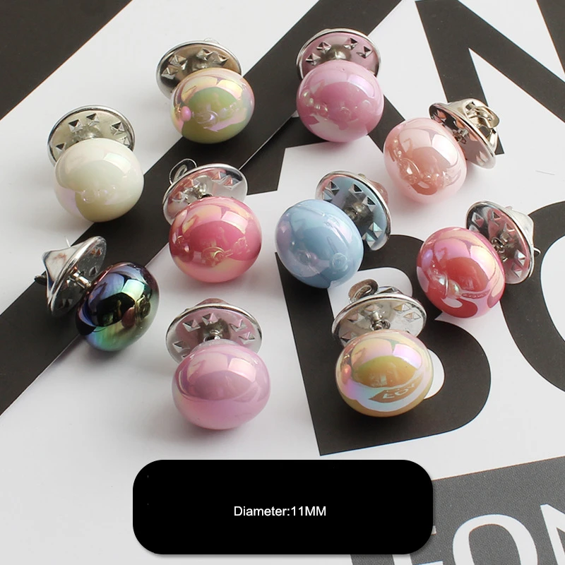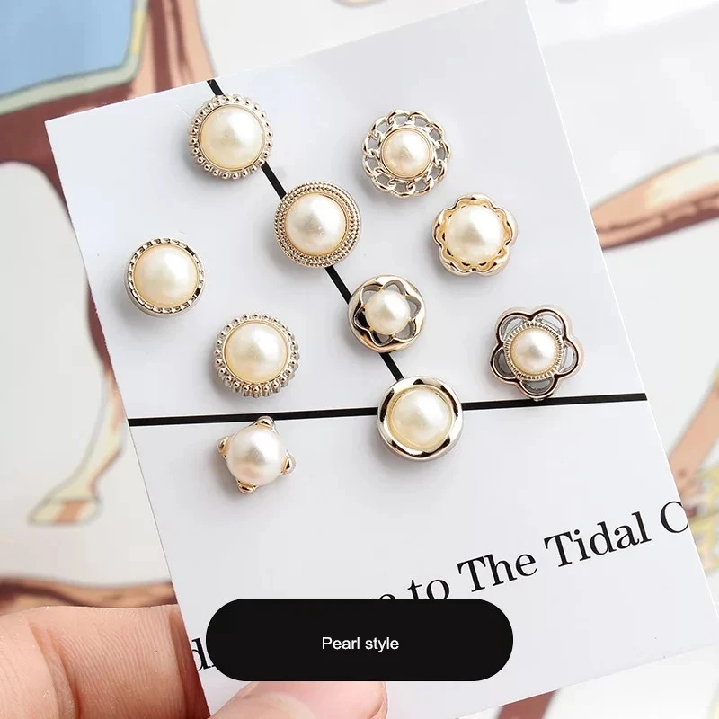 10Pcs Various Styles Metal Brooch Buttons DIY Clothing Shirt Crafts Decorative Garment Pin Flowers Pearl Press Nail Accessories