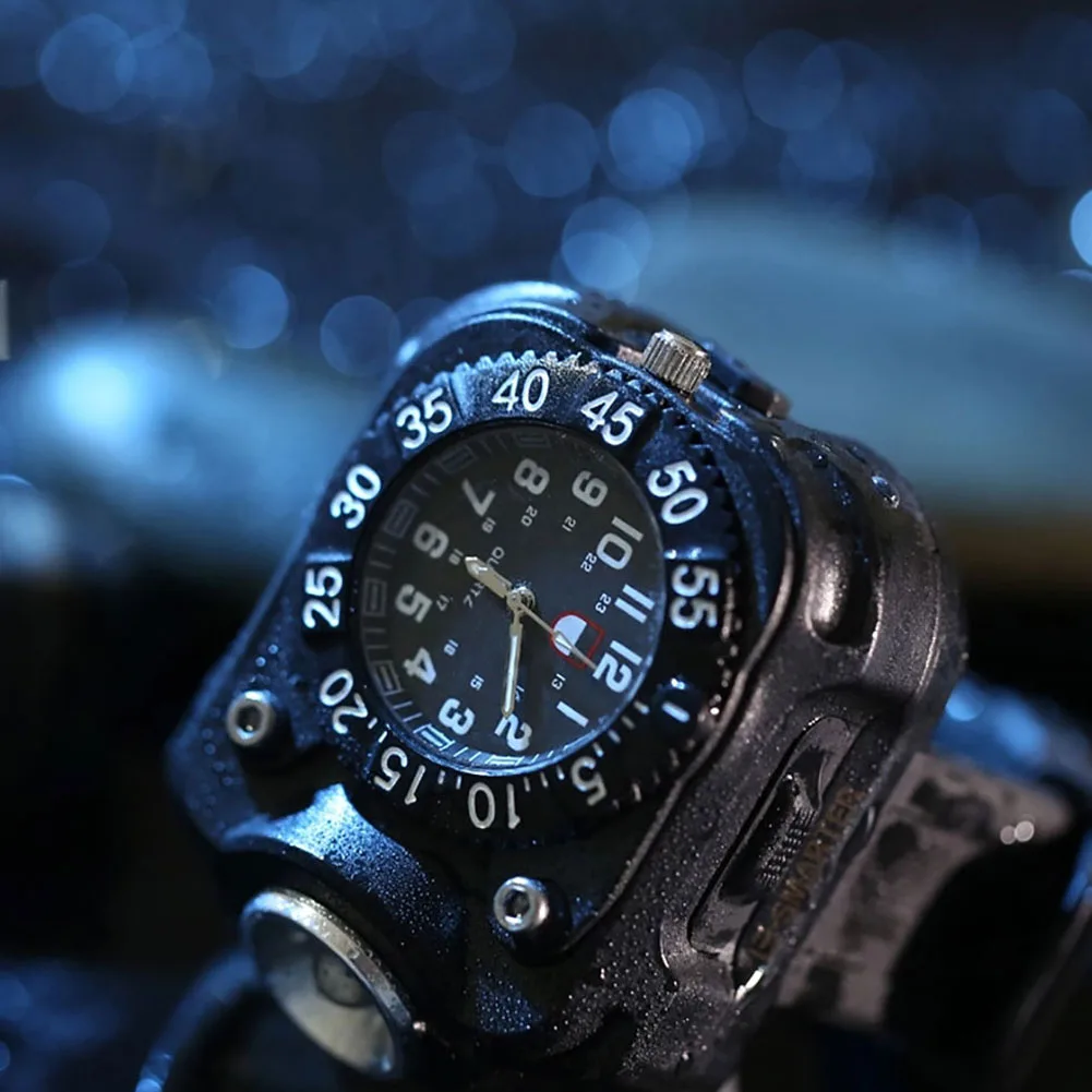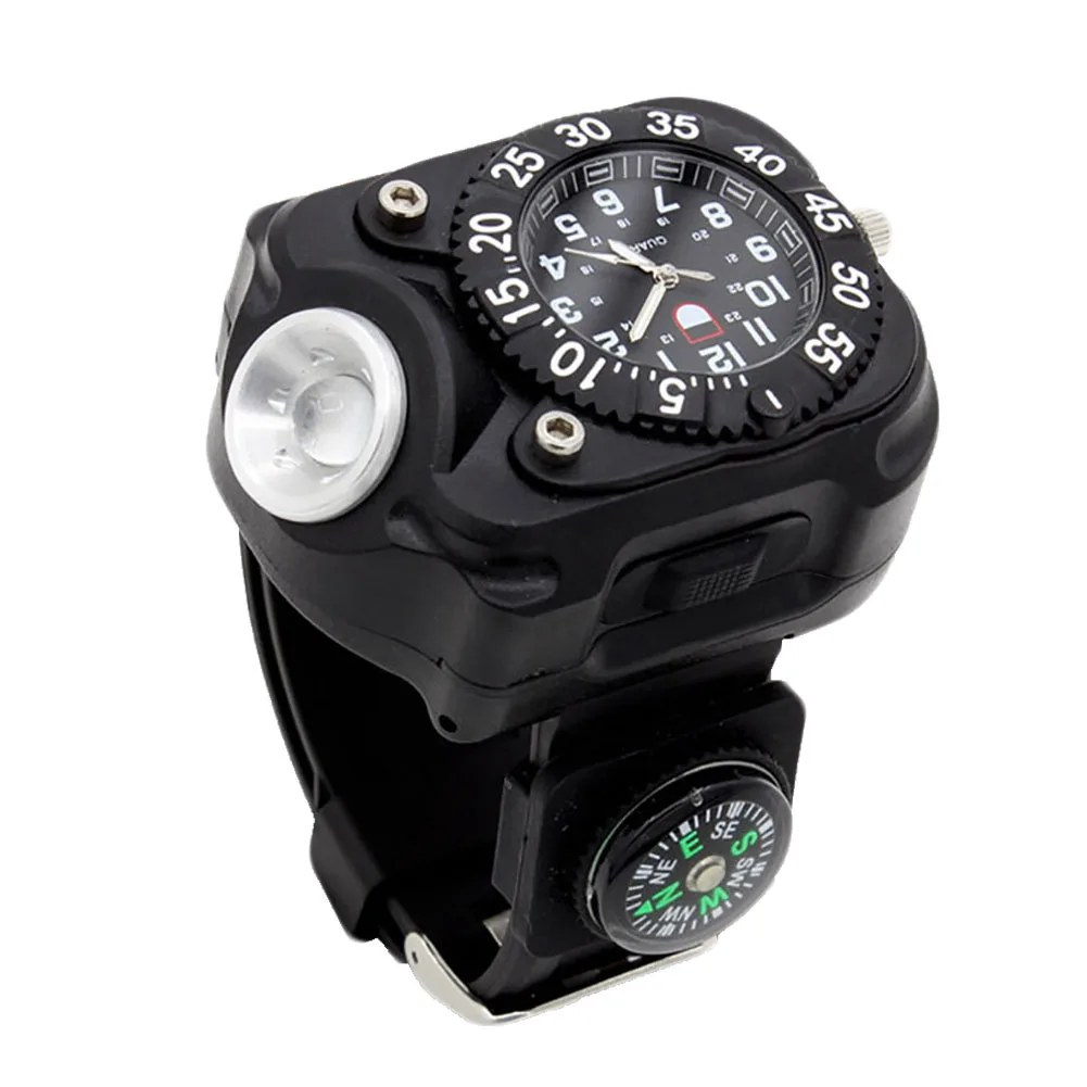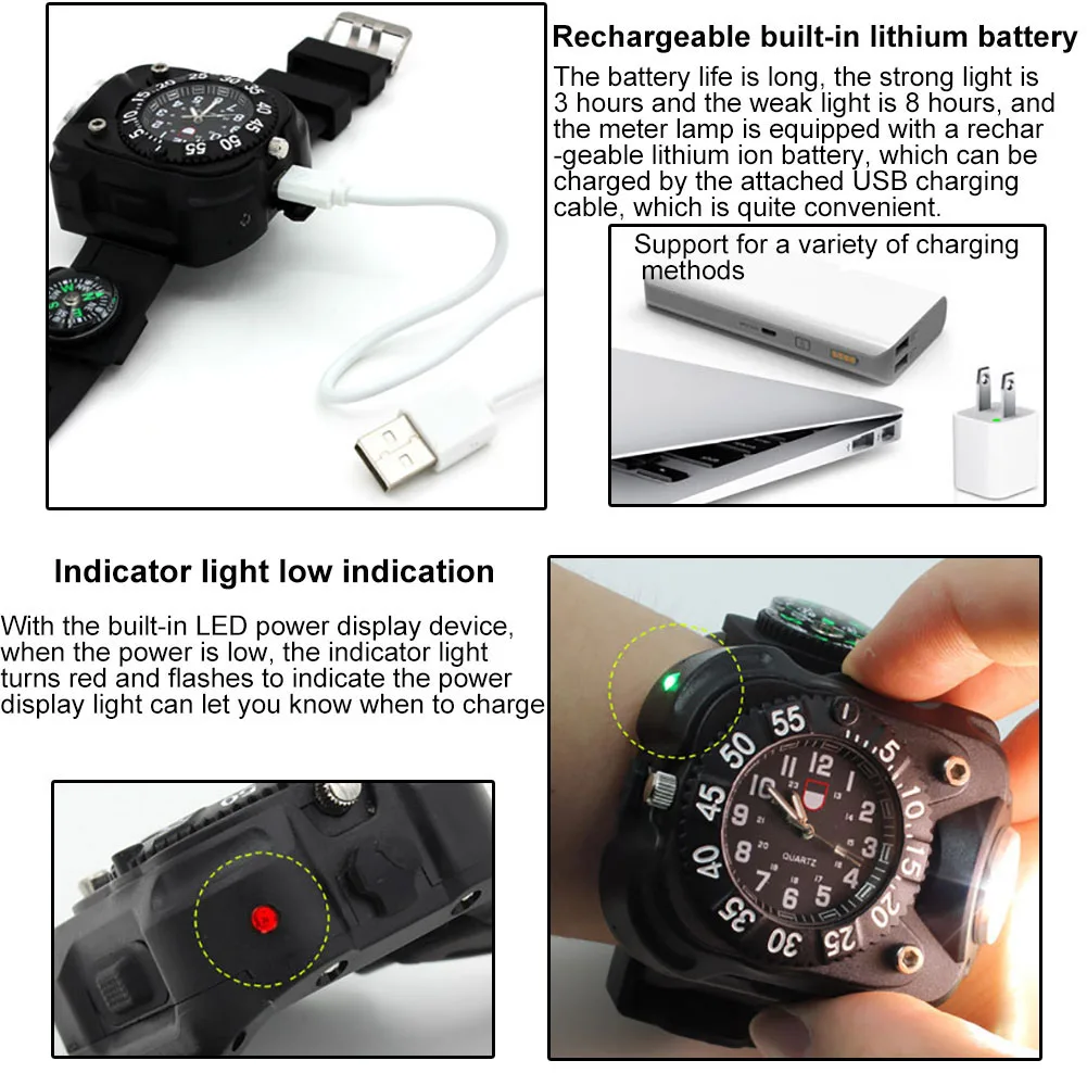 3-в-1 Спорт на открытом воздухе перезаряжаемый яркий светодиодный фонарик-компас наручные часы