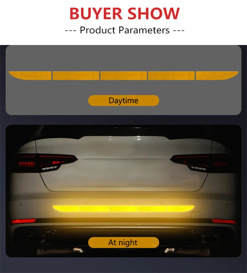 Описание: Название продукта: Автомобильная Светоотражающая Автомобильная наклейка Размер: около 86,5*3,4 см Цвет: красный, желтый, синий, белый Материал: алмазные светоотражающие наклейки Роль: предупреждающий светоотражающий Упаковочный лист: 1 * светоотражающие автомобильные наклейки