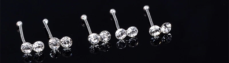 Описание изделия: Категория продукта: шпильки для носа Количество: 24 шт./одна коробка/Материал: Серебристый Камень Материал: кристалл Размер стойки: длина около 8 мм.