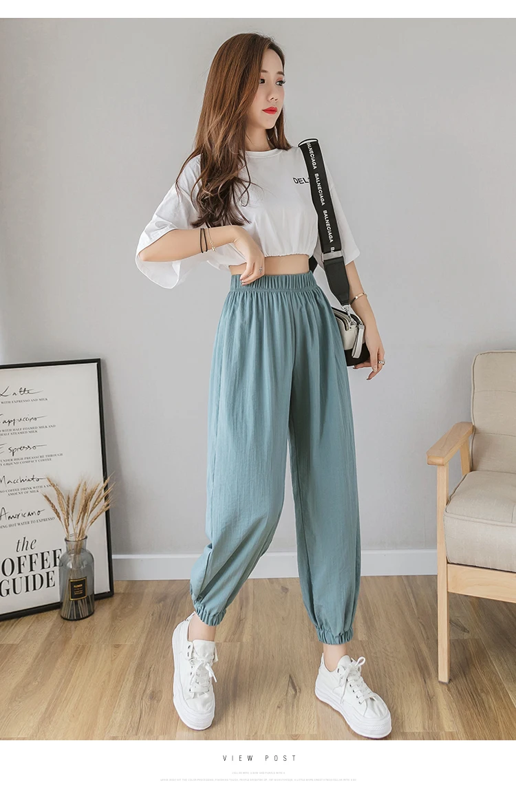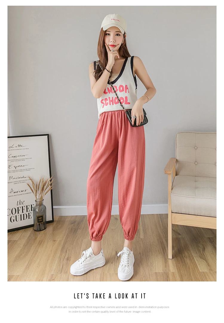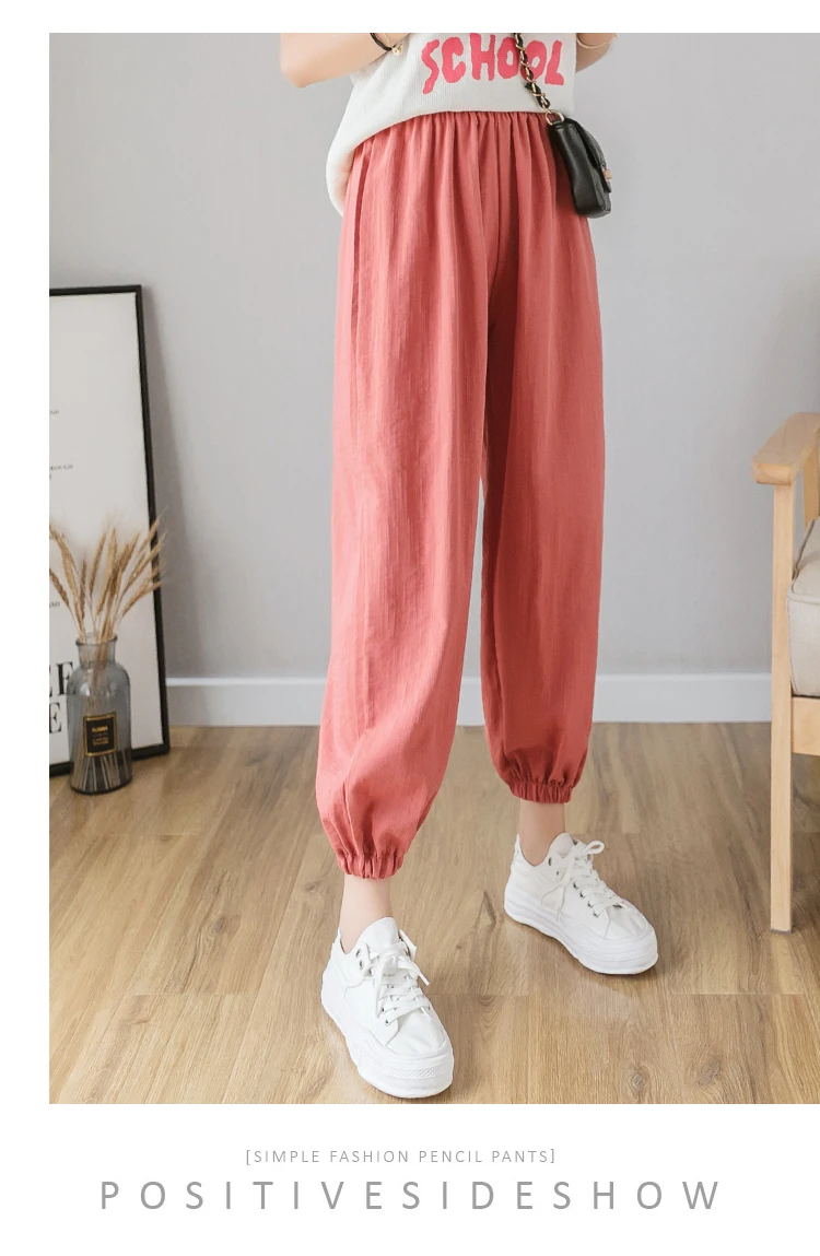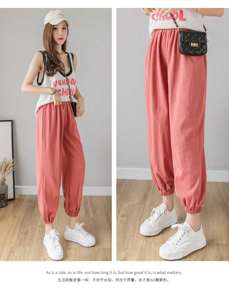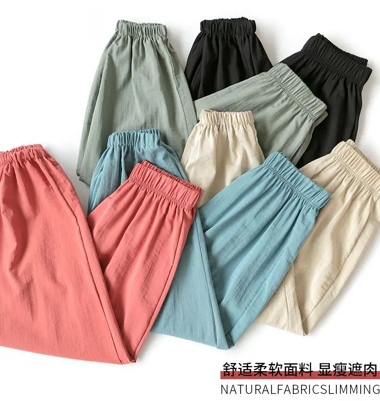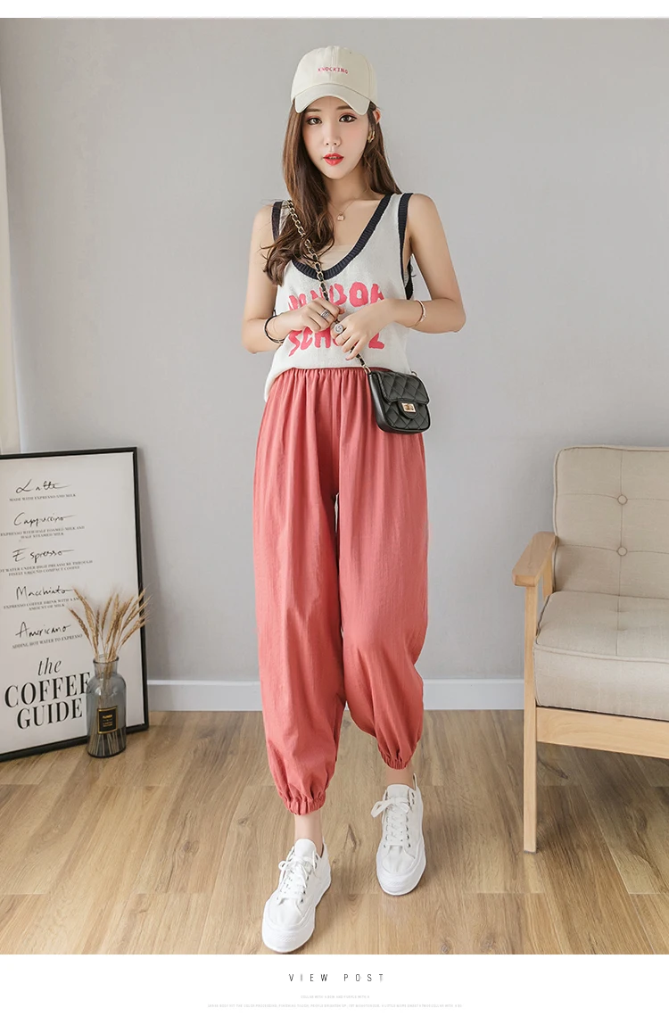TingYiLi/женские шаровары из хлопка и льна; Брюки-Капри; Цвет бежевый, красный, зеленый, синий, черный; Летние брюки