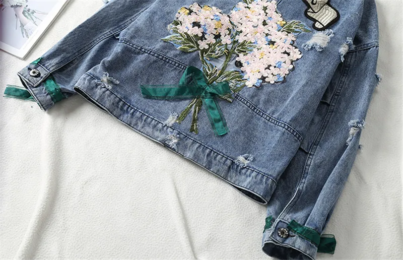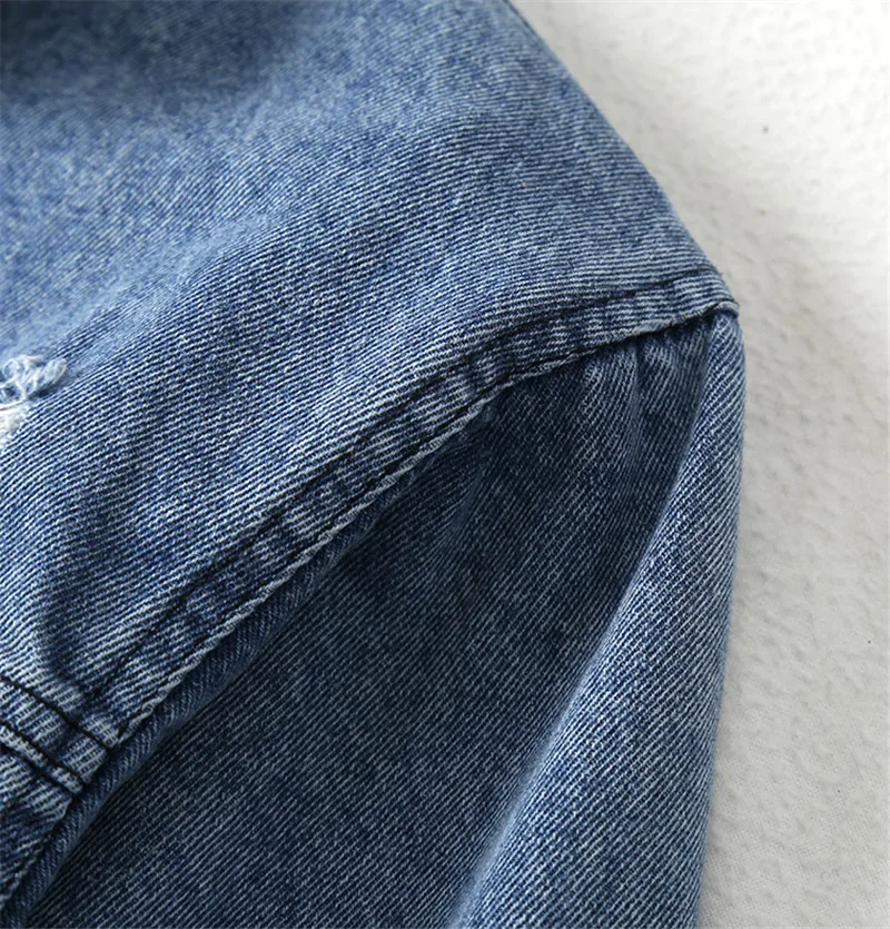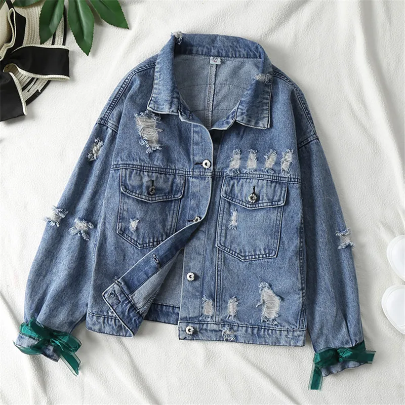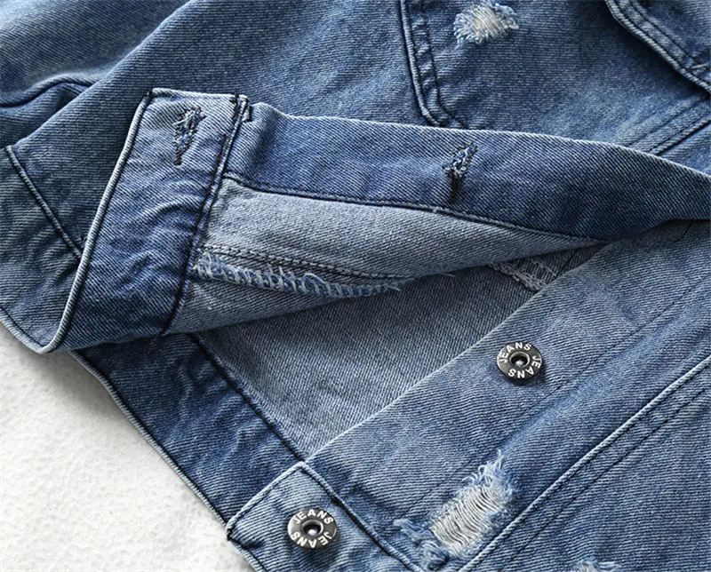 Женская джинсовая куртка WEPBEL однобортная рваная с отложным воротником размера