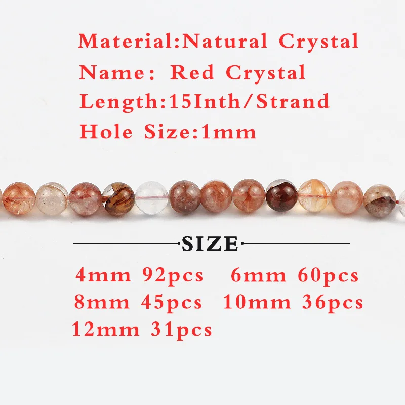 UPGFNK Natural Red Quartz Crystal Beads Round Loose Spacers Beads For Jewelry making DIY bracelets accessories 4/6/8/10/12MM