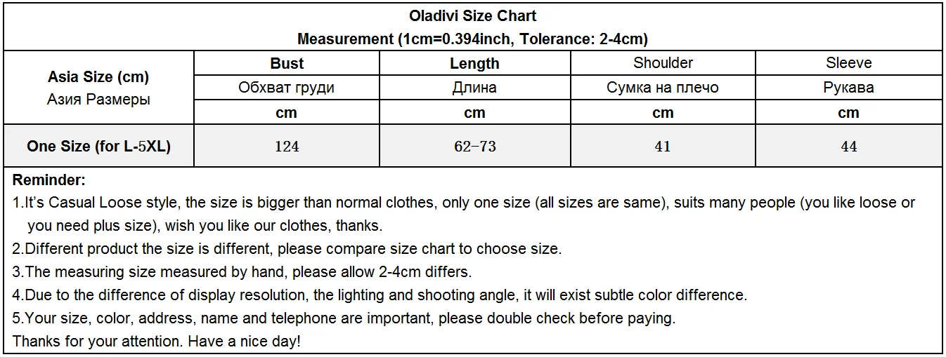 Bust: 124cm, Length: 62-73cm, Shoulder: 41cm, Sleeve: 44cm