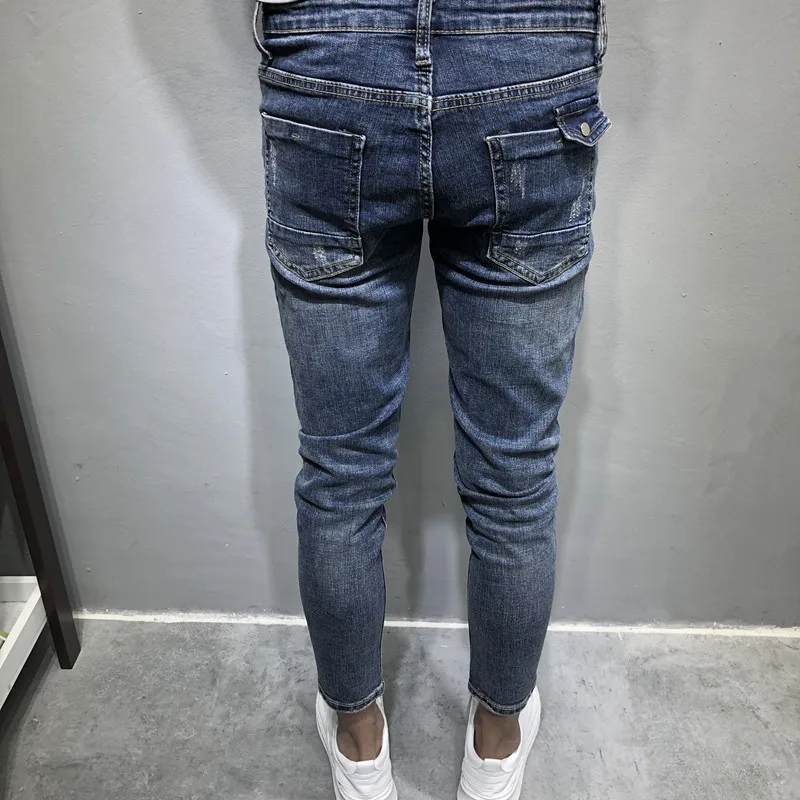 Мужские джинсовые брюки Ouma однотонные простые облегающие рваные с низкой