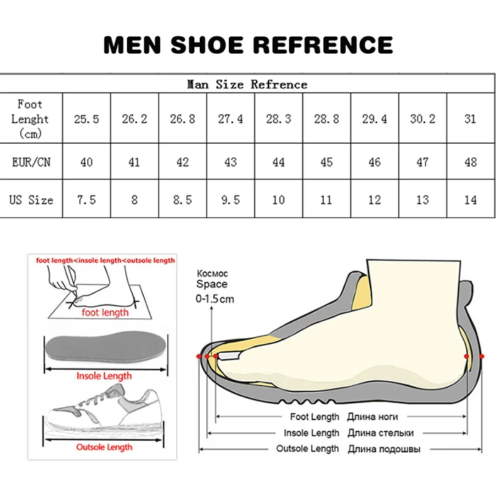 Из-за разных настроек контрольного устройства, размер, возможно, имеет 0,2-0,4 см вследствие измерений вручную. Пожалуйста, выберите наш размер в соответствии с длиной стопы. Если вы не уверены, пожалуйста, свяжитесь со мной. В разных странах разные размеры. Продано на Aliexpress global. Надеемся на ваше понимание.