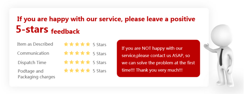 Мы относимся к нашей репутации серьезно, мы покупаем и продаем онлайн, поэтому мы понимаем ценность доверия. Если вы не удовлетворены своим заказом, пожалуйста, свяжитесь с нами, и мы будем работать с вами, чтобы разрешить его для вашего удовлетворения.