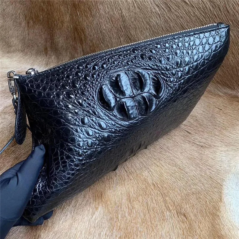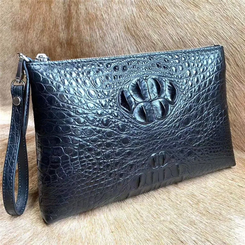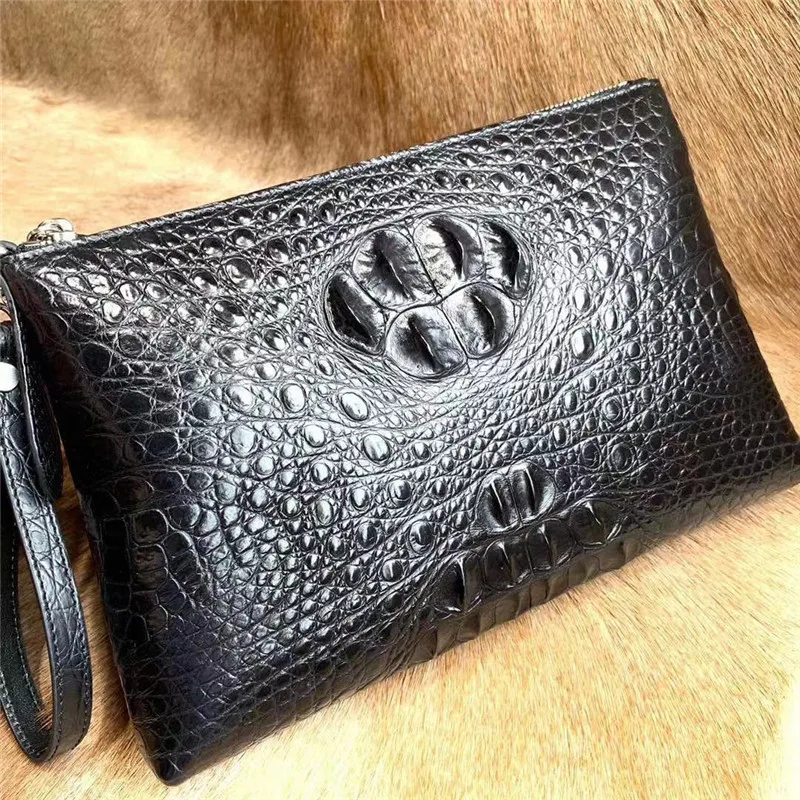 Подлинная настоящая крокодиловая кожа бизнесменов большая сумка на запястье коричневый клатч кошелек из натуральной кожи аллигатора Мужской чехол для ноутбука сумка