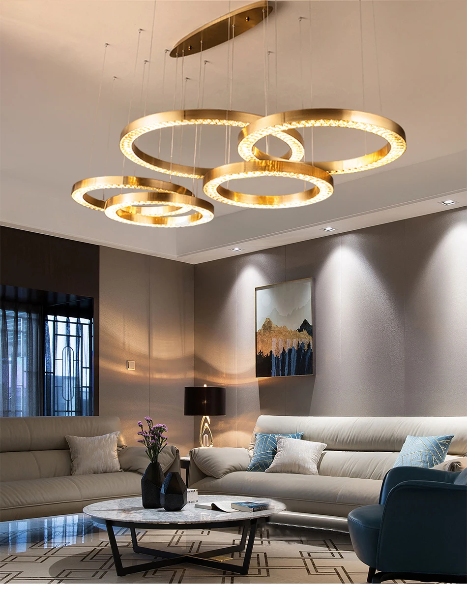 Современная светодиодная хрустальная люстра для гостиной, роскошное матовое Золотое кольцо, хрустальная лампа для спальни, столовой, украшение, светильник