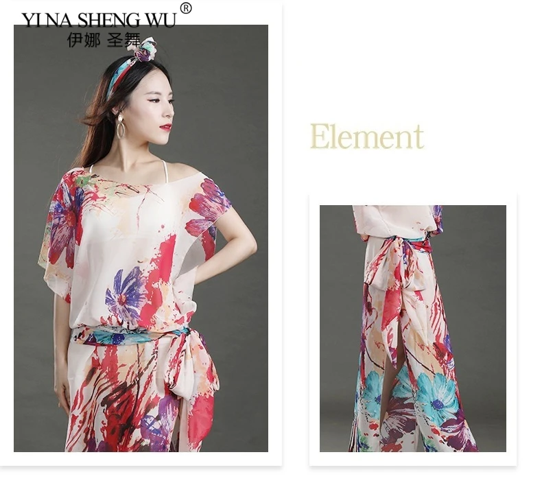 Костюм для танца живота, сексуальный халат, перфорированный, для восточных танцев, с принтом, шифоновая юбка khalegy, новинка для женщин, одежда для сцены, платье для танца живота