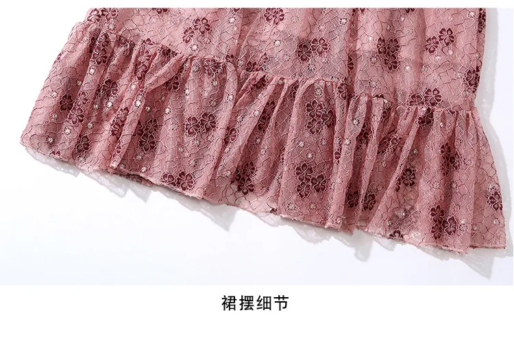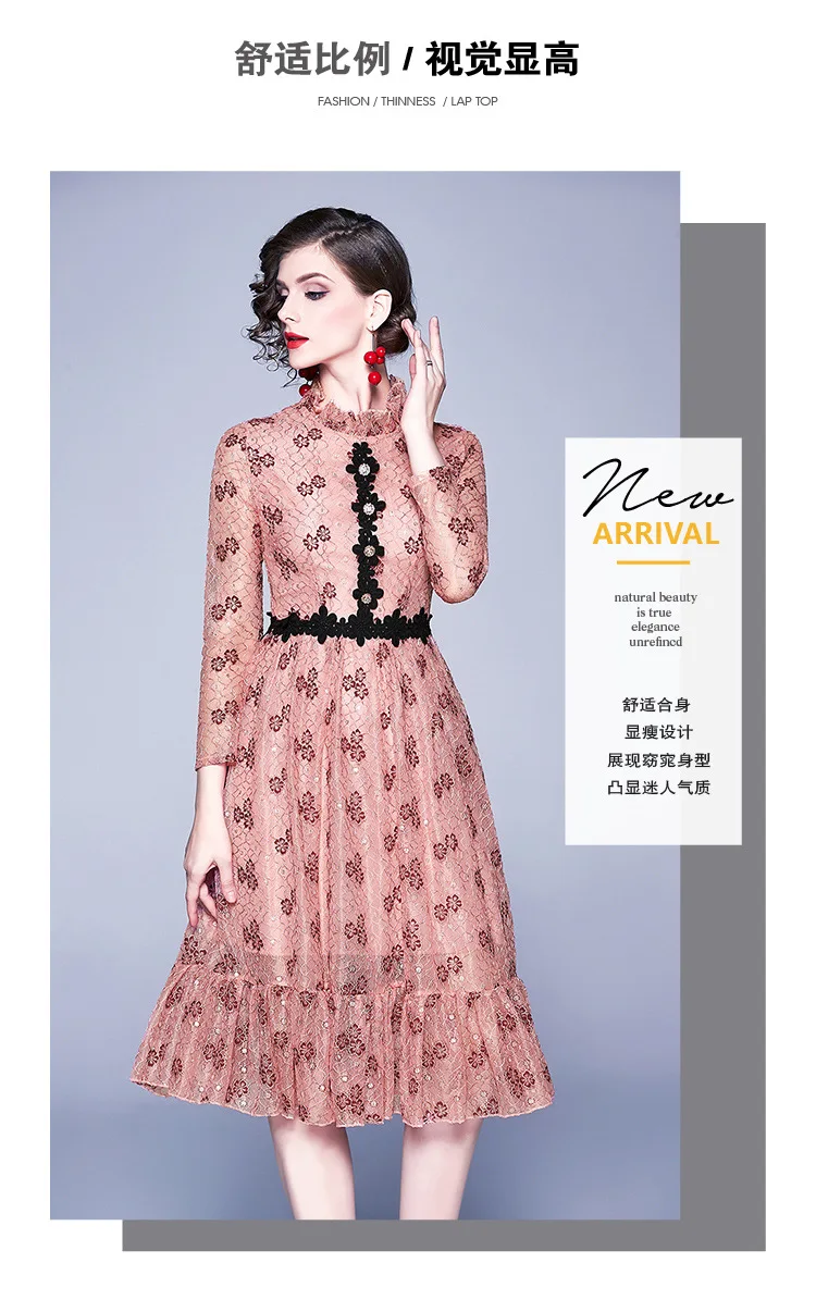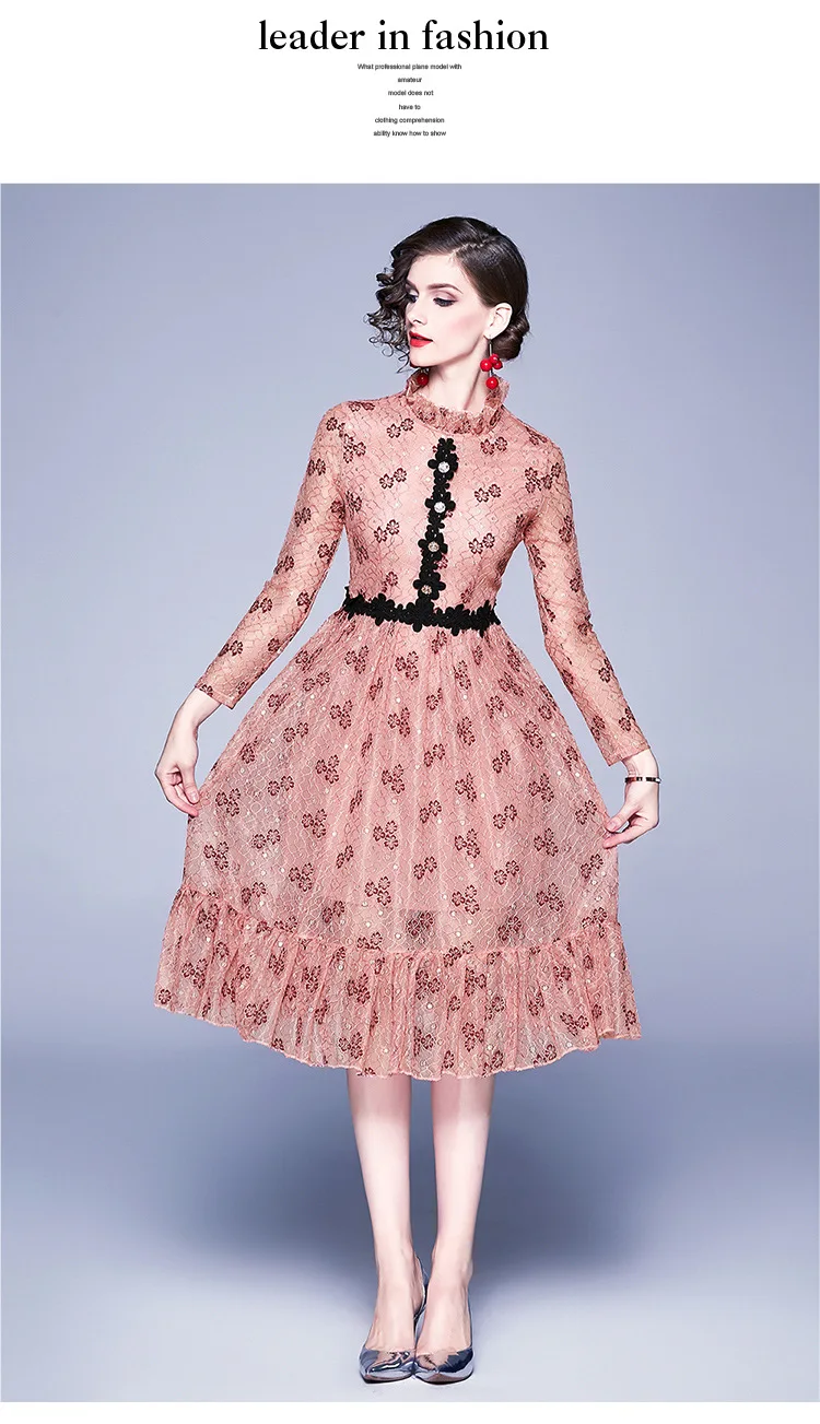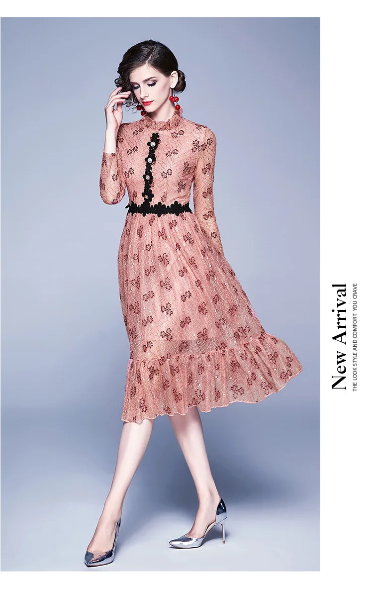 Женское платье с длинным рукавом вышивкой крестом и кружевами | Женская одежда