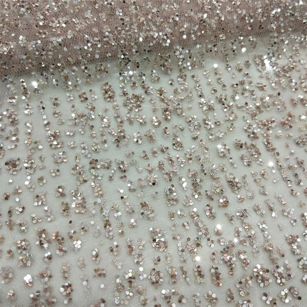 5 ярдов Suprior качество розовое золото с наклеенными блестками сетка тюль ткань для вечернее женское платье сверкающие французские блестки Сетка кружева материал