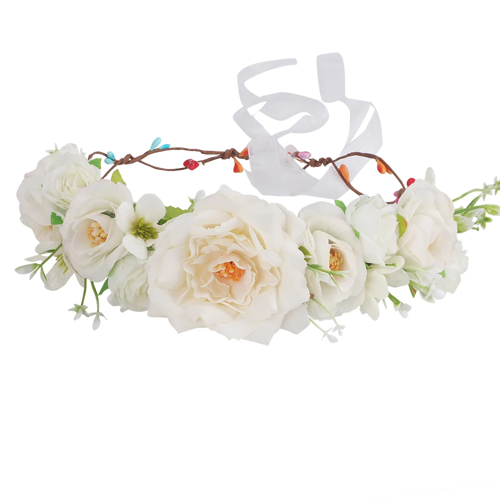 Бургундия сочная Цветочная свадебная корона цветочный головной убор праздничные волосы Венок Свадебные аксессуары для волос для девочек