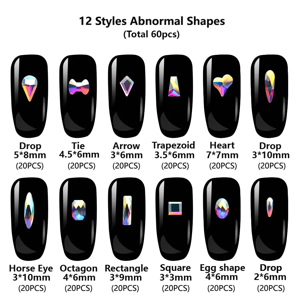 20 шт., 3D кристаллы, камни для ногтей, золотые стразы с плоской задней поверхностью, стеклянные стразы AB для украшения для ногтей, ювелирные изделия, MJZ2178