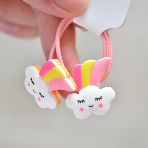 2 шт., милый головной убор принцессы с радужной белой лошадкой, Детские эластичные повязки для волос, Детские веревки, аксессуары для девочек, детский головной убор