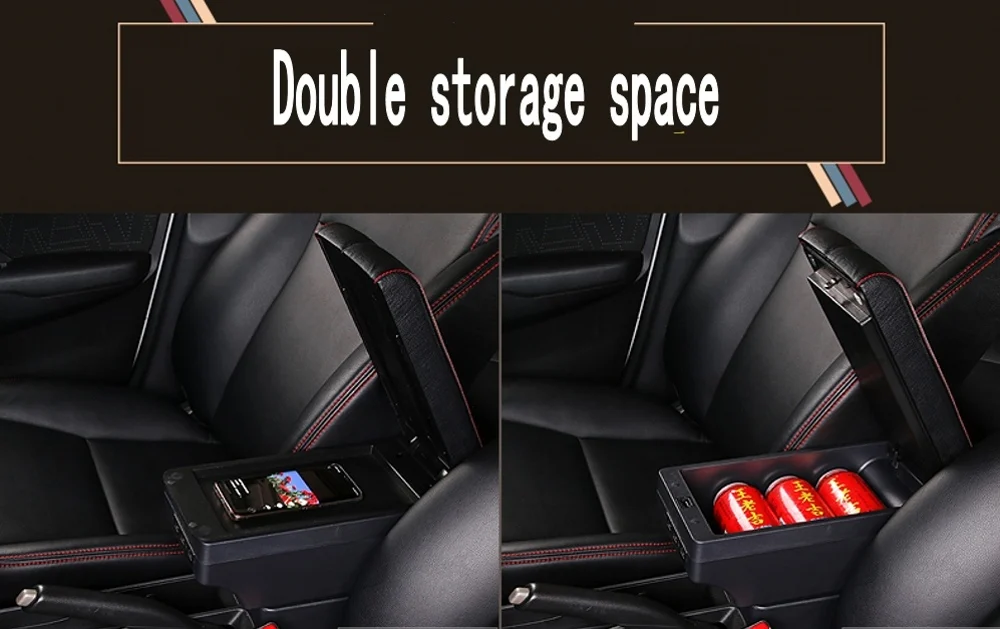 Модель A-Double storage, 7Usb, выдвижной, держатель для телефона, подстаканник, размер: 34x15x15 см.